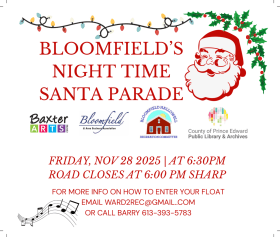 Bloomfield Branch Library The Blomfield Branch Library was founded in 1896 and remains a hub of activity in the village. One of the six branches of the County of Prince Edward Public Library, the Bloomfield branch is a welcoming cozy space with books, WIFI and more. View