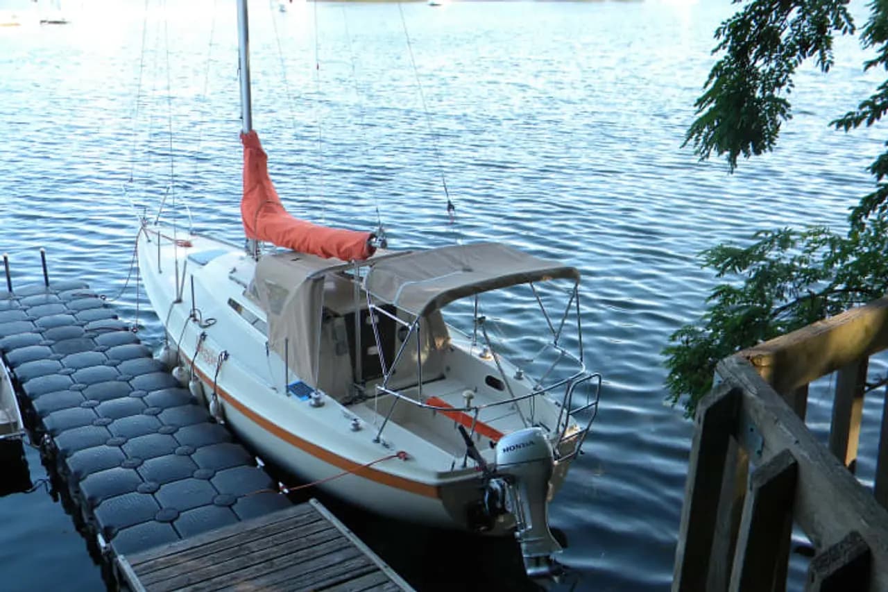 The boat is a Tanzer 26. Tanzer manufactured a number of different models and lengths. This 26-footer has below-deck accommodations including a separate “head” (washroom in landlubber terms).