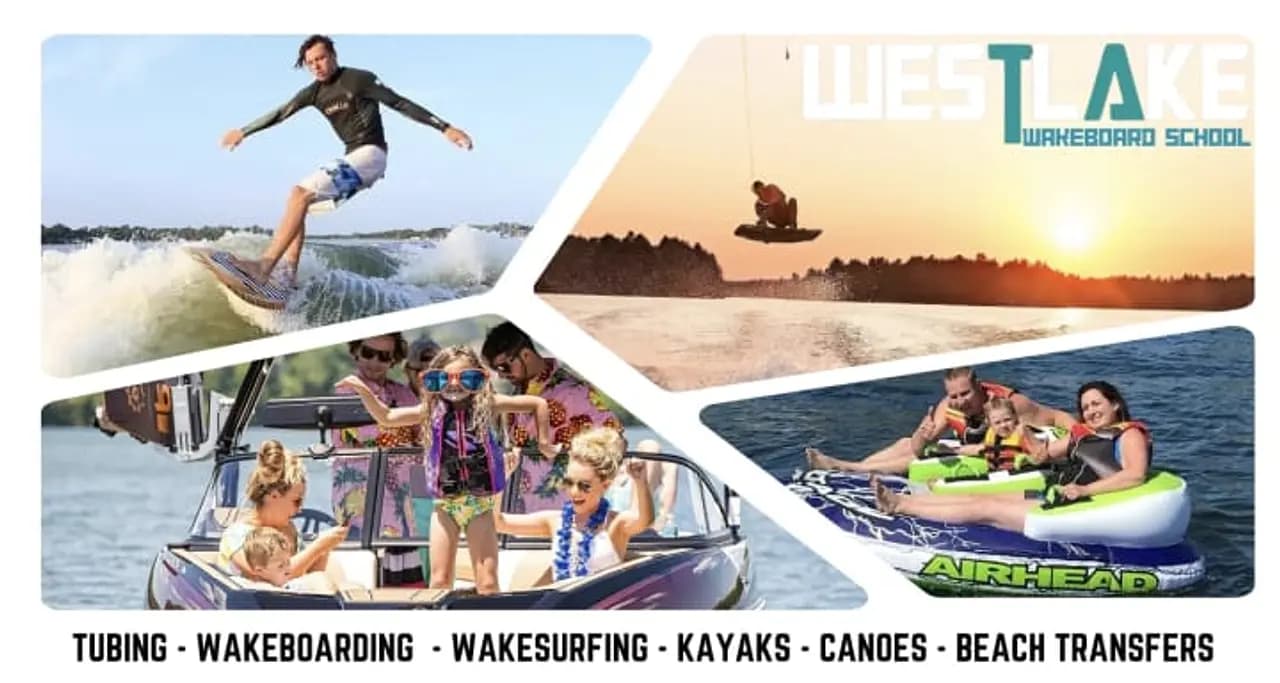 Located on Westlake just seconds from Sandbanks, Westlake Wakeboard School has been making people smile for over 23 years. From relaxing lake tours on our giant Dragon tube to wild, splashy rides on our other tubes—we’ve got it all. We offer ski, wakeboard, and wakesurf lessons with certified Canadian coaches using 2-way communication helmets. Rentals available: kayaks, canoes, and SUPs. Fun for all ages 4 and up!